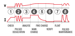 - ДЕСУЛЬФАТАЦИЯ - Выполняет восстановление (десульфатацию) и регенерацию глубоко разряженных аккумуляторов (до 2V).